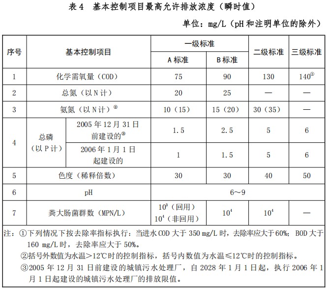 ③2005 12 31 日前建設的城鎮污水處理廠,自 2028 1 1 日起,執行2006 1 1 日起建設的城鎮污水處理廠的排放限值。